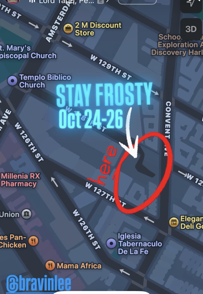 Stay Frosty is part tailgate, part trunk show, part festival, and part site-specific exhibition located in an open-air parking lot in West Harlem. Each vehicle will contain a curated presentation.